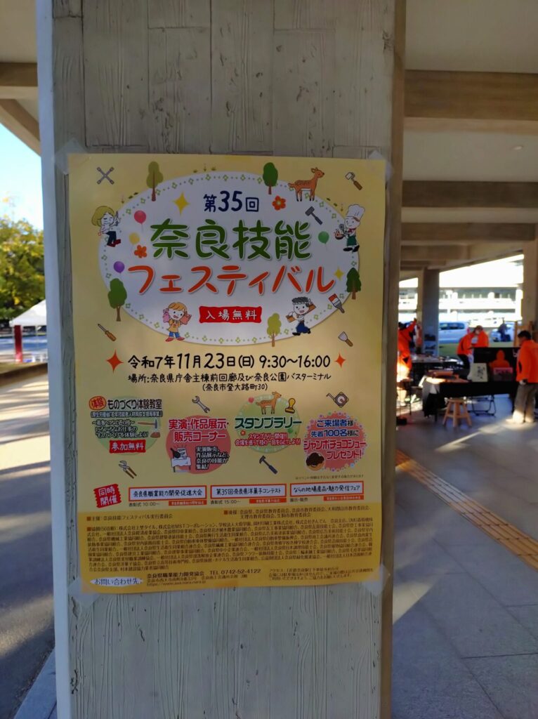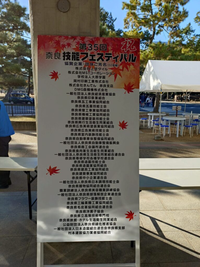 去る11月23日(日)9:30から16:00まで、奈良県庁舎主棟前回廊および奈良公園バスターミナルにて『第35回奈良技能フェスティバル』が開催されました。技能フェスティバルの主催は奈良県職業能力開発協会と奈良県技能士会連合会です。