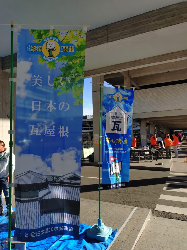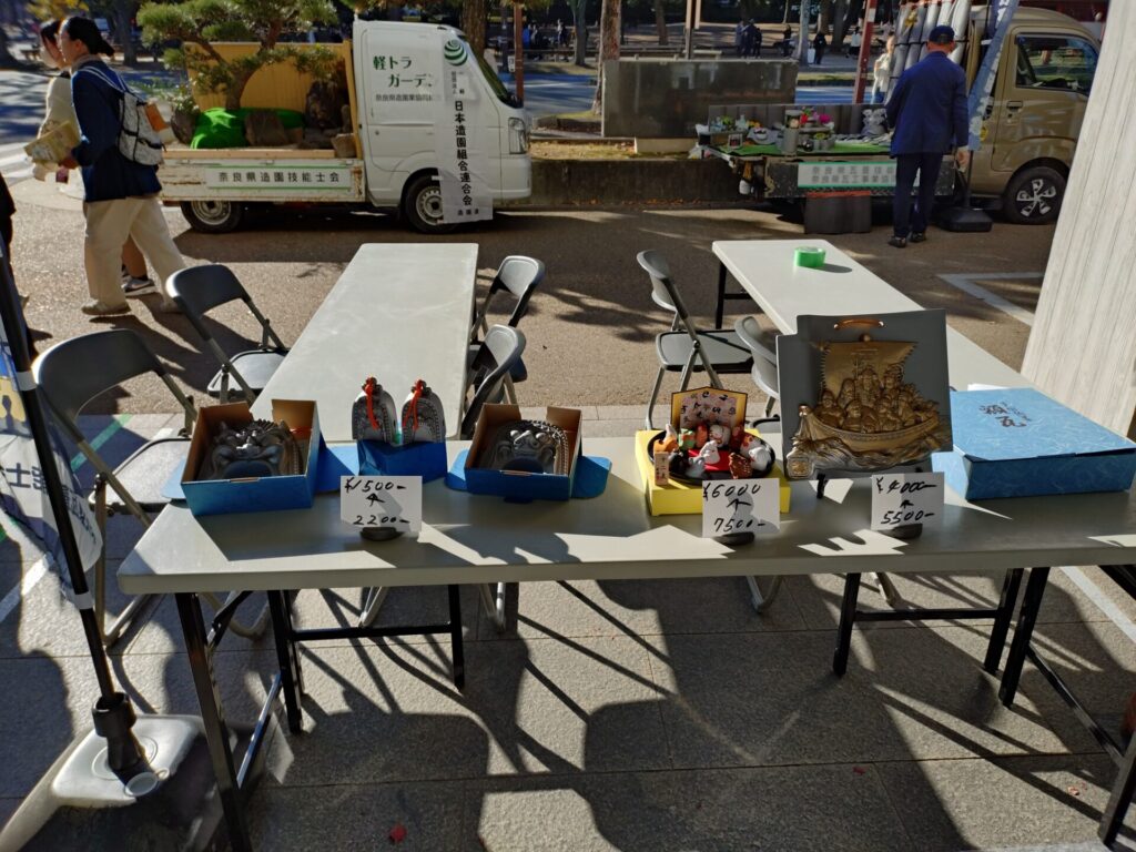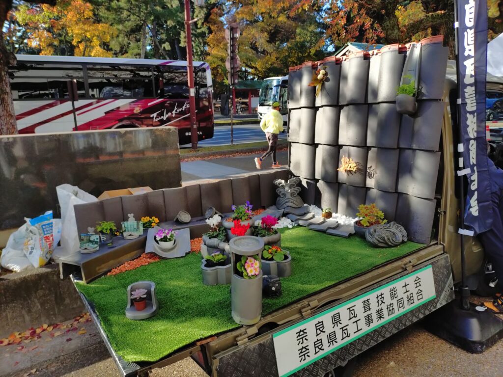 奈良県瓦葺技能士会としては、昨年と同様に軽トラガーデンの展示と飾り瓦の販売を行いました。