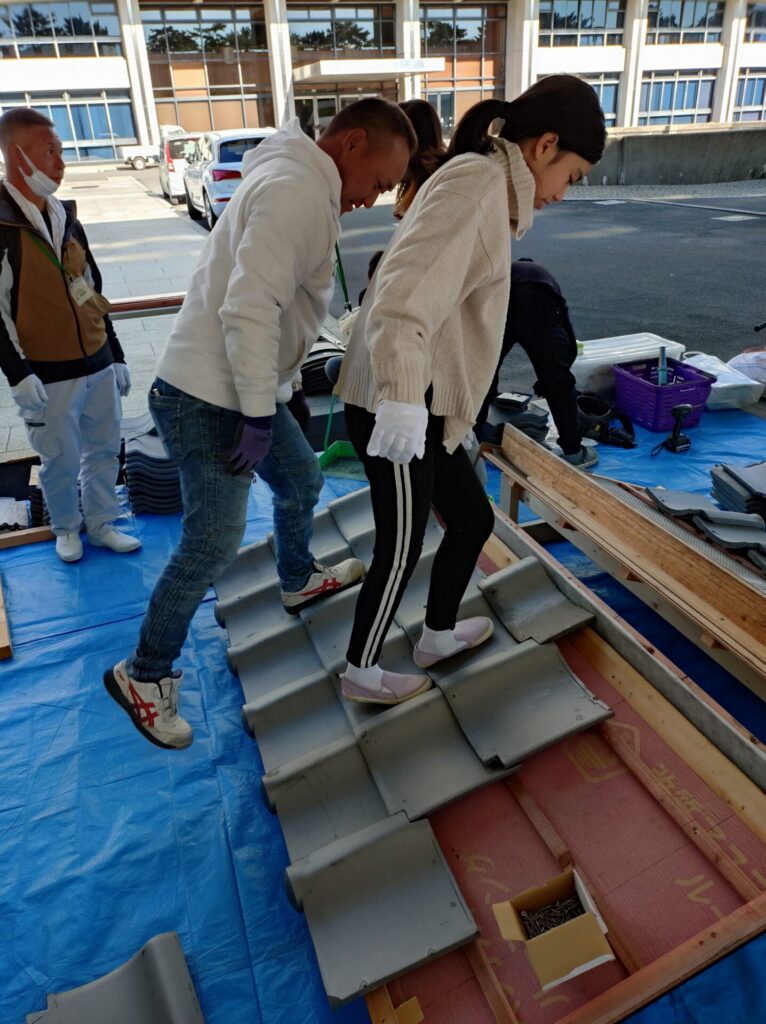 体験者にはアンケートも記入してもらったのですが、「ビス留めするのが楽しかった。」「瓦の加工で綺麗に割れた時、気持ち良かった」「家を作るのに、いろいろな苦労があるのを知ったので良かった」など、大変好評でした。